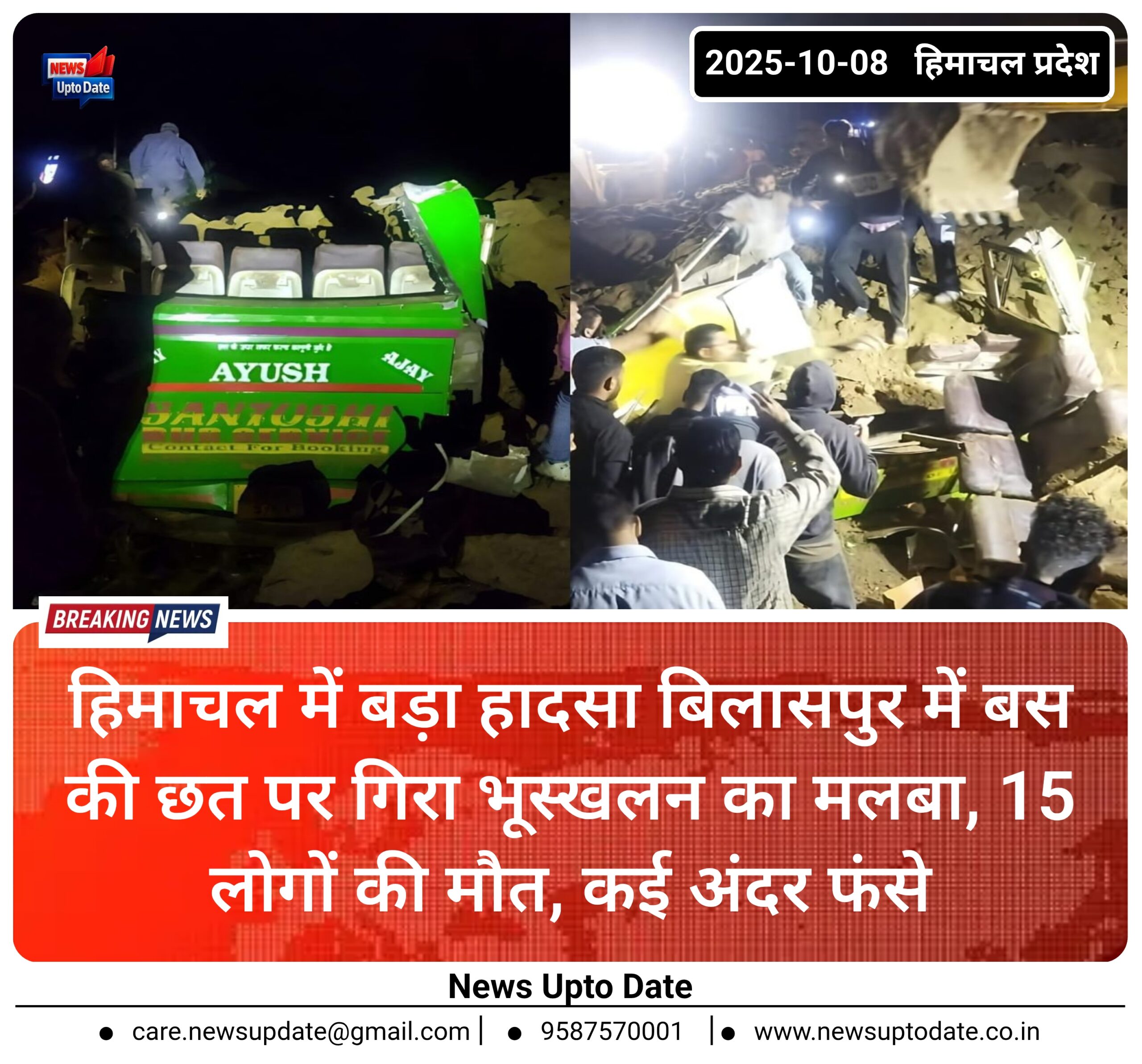 हिमाचल में बड़ा हादसा बिलासपुर में बस की छत पर गिरा भूस्खलन का मलबा, 15 लोगों की मौत, कई अंदर फंसे बताया जा रहा है कि भूस्खलन का मलबा सीधे बस की छत पर आया गया। अब तक इसमें 15 लोगों की मौत हो चुकी है। सूचना मिलने पर मौके पर पहुंची बचाव दल की … Read more