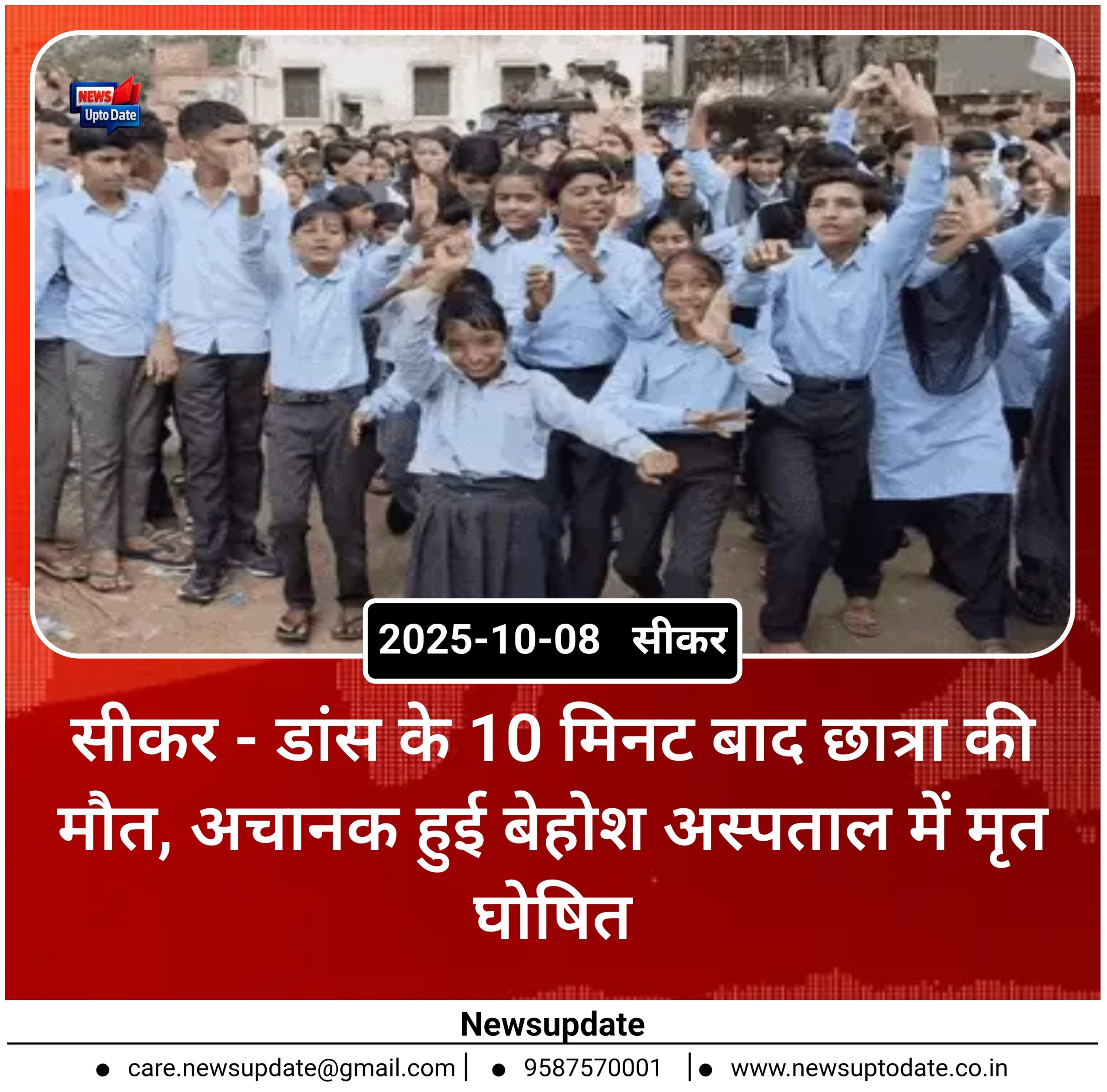 सीकर जिले में डांस करने के 10 मिनट बाद एक 12वीं की छात्रा की मौत हो गई। वह डांस के बाद चलते-चलते अचानक बेहोश हो गई और जमीन पर गिर गई। डॉक्टर्स का मानना है कि कार्डियक अरेस्ट से छात्रा की मौत हुई है। घटना मंगलवार को पलसाना कस्बे के गोविंदपुरा गांव की है। दरअसल, … Read more