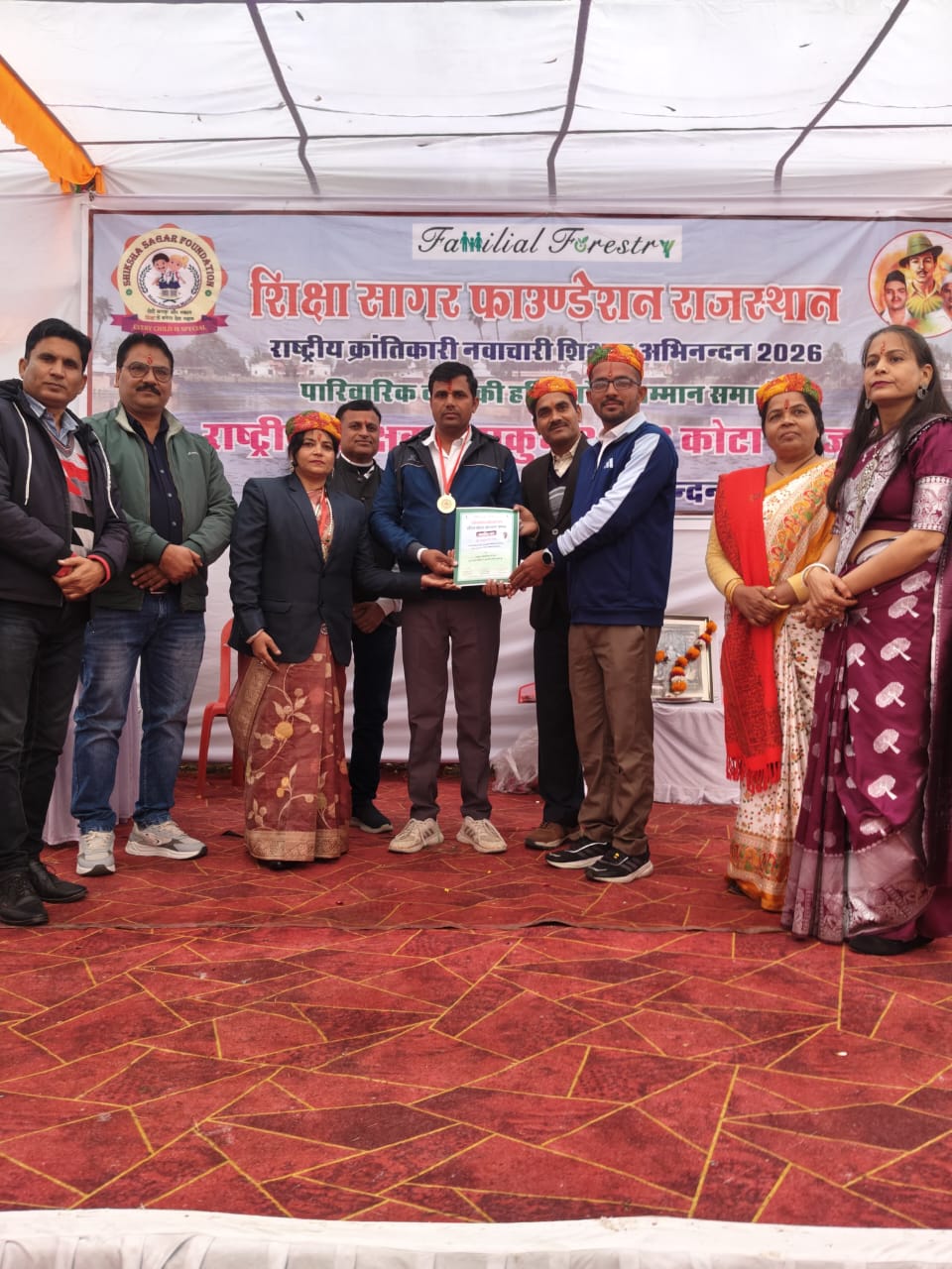 कोटा में रामकरण नाथ को मिला हरित योद्धा सम्मान, लूणकरणसर क्षेत्र में खुशी की लहर लूणकरणसर, (श्रेयांस बैद): शिक्षा सागर फाउंडेशन कोटा द्वारा आयोजित हरित योद्धा सम्मान समारोह मे पारिवारिक वानिकी के प्रदेश युवा समन्वयक विकाश गोदारा मनाफरसर विशिष्ट अथिति रहे । रामकरण नाथ धीरदान निदेशक भवानी शिक्षण संस्थान स्कूल मनाफरसर (लूणकरणसर) को पारिवारिक वानिकी … Read more