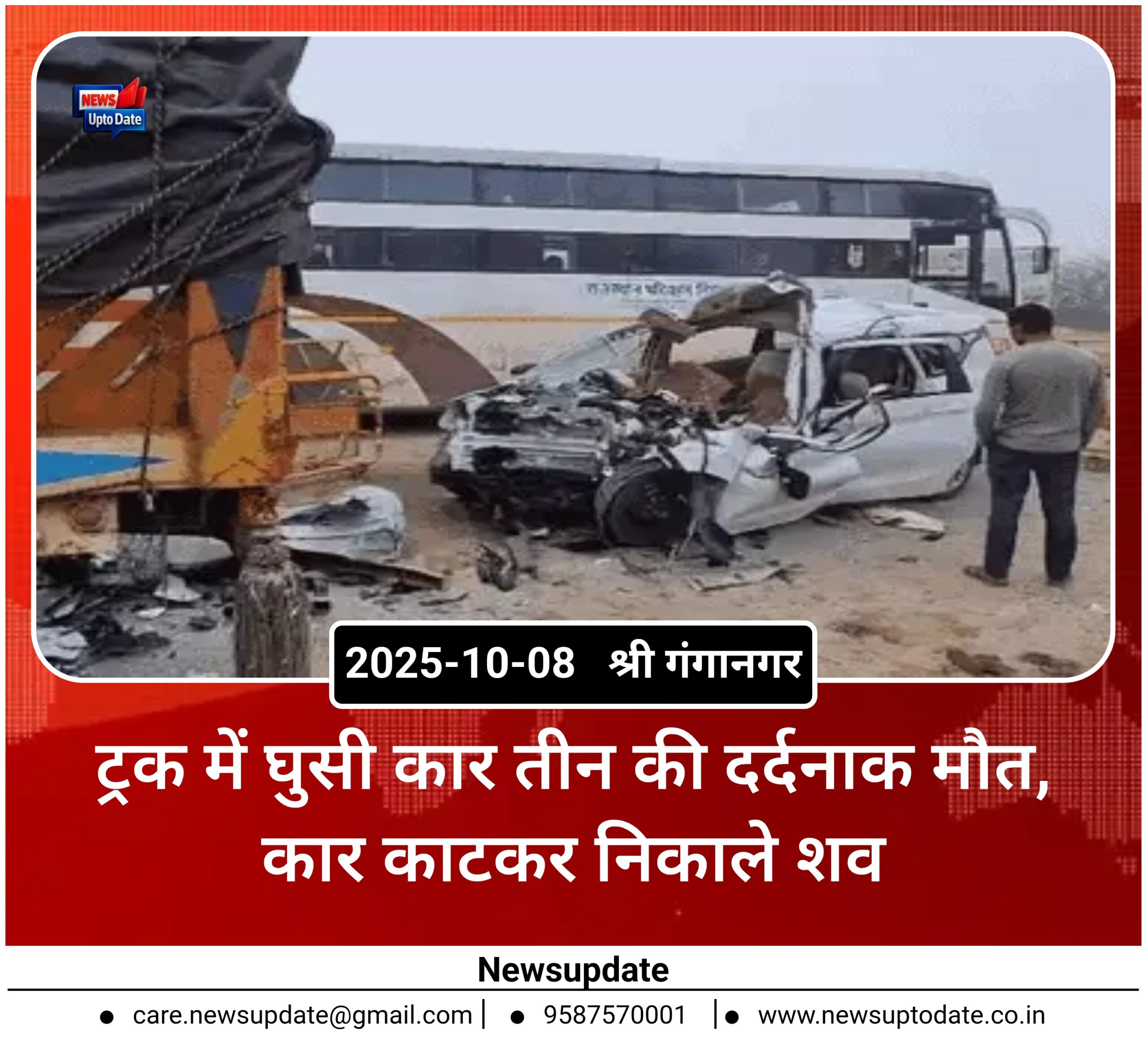ट्रक में घुसी कार तीन की दर्दनाक मौत, कार काटकर निकाले शव आगे चल रहे ट्रक में पीछे से कार (टैक्सी) घुस गई। कार के परखच्चे उड़ गए। हादसे में कार सवार तीन श्रद्धालुओं ने मौके पर दम तोड़ दिया। दो गंभीर रूप से घायल हैं। शव गाड़ी में बुरी तरह फंस गए थे। टैक्सी … Read more