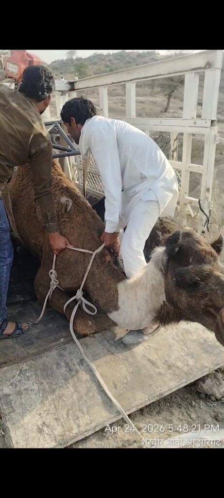 “अंधी ऊंटनी को सेवा समिति ने गुसाईंसर बड़ा गौशाला में शिफ्ट किया”